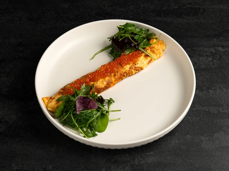 Омлет с сыром Бри и красной икрой